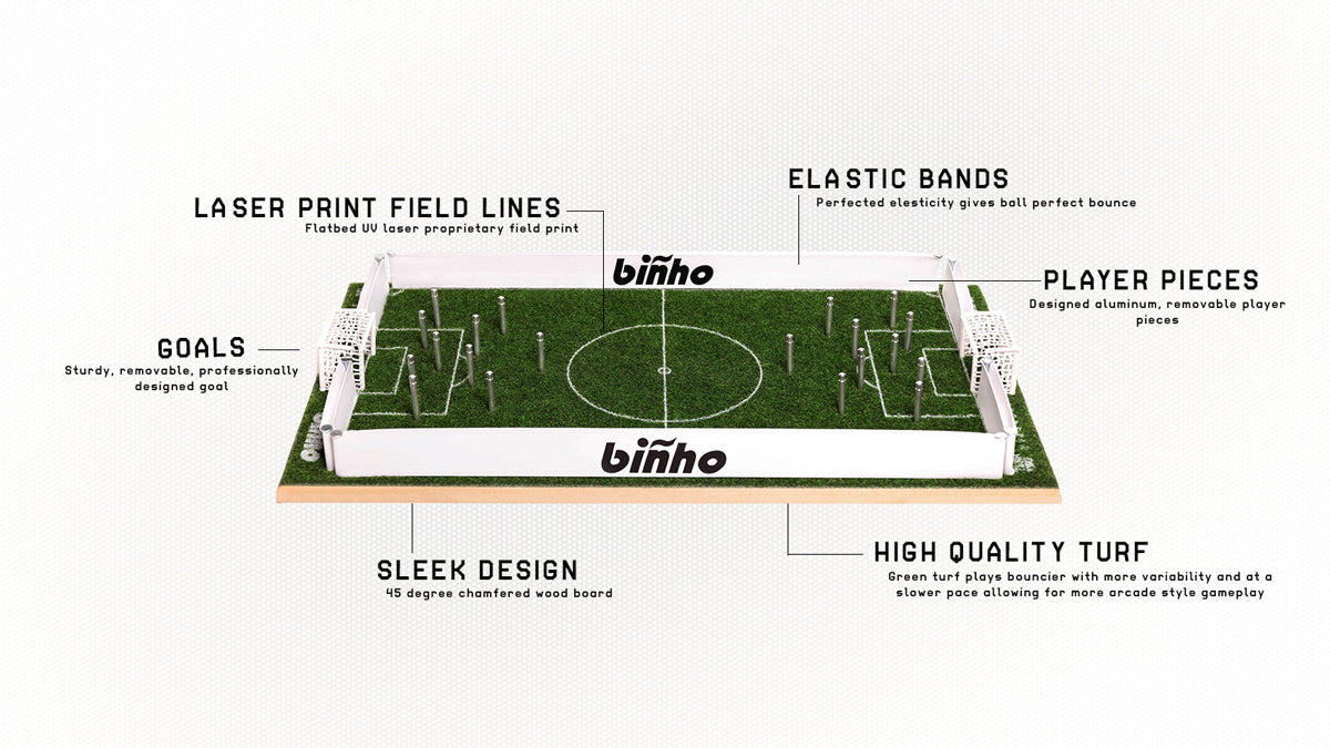 The Binho Classic: Green Turf is made with a unique real grass like turf that will add a twist to the traditional Binho gameplay! This limited edition release has all of the features of the Binho Classic.